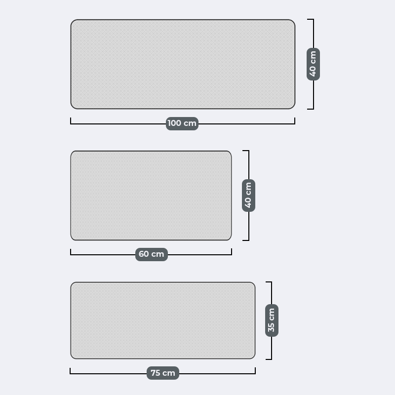 - Sizes: Available in 75cm x 35cm, 60cm x 40cm, and 100cm x 40cm sizes